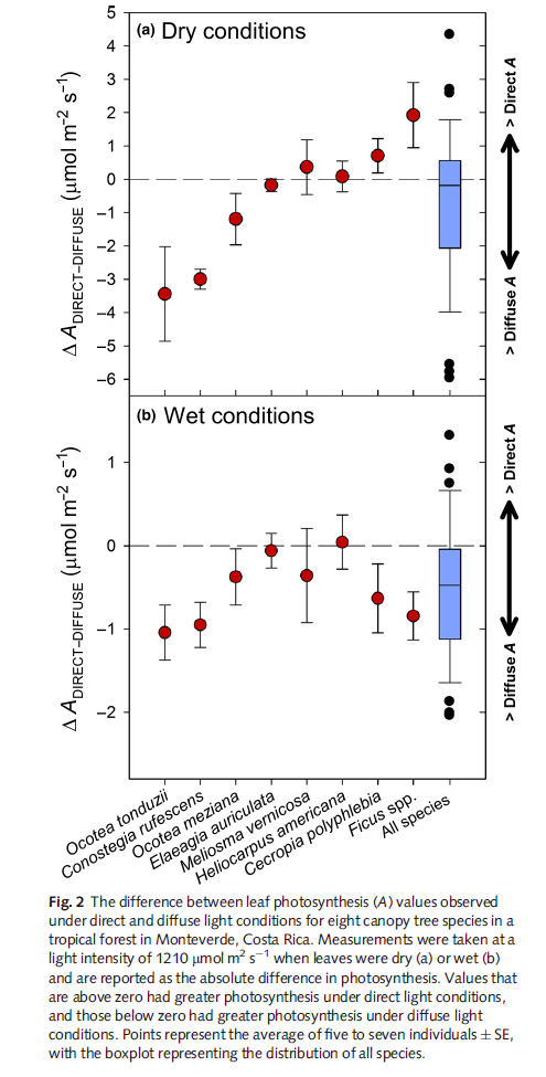 原文以 Diffuse light and wetting differentially affect tropical tree leaf photosynthesis 為標題發(fā)表在New Phytologist(IF=8.512)上。