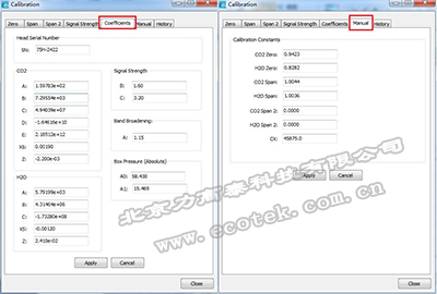 2、 7500A系統通電,運行之前版本的應用軟件建立連接,備份產(chǎn)品參數。主要備份Calibration下的Coefficients和Manual數據。此外可以備份之前的站點(diǎn)信息,以防升級后丟失這些關(guān)鍵參數;