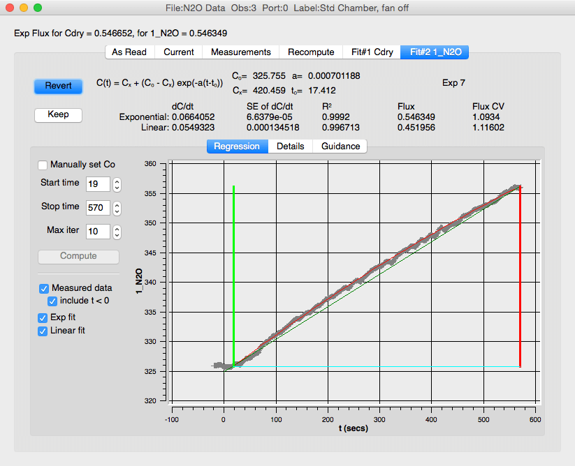 可對通量數據進(jìn)行線(xiàn)性或指數方程擬合。