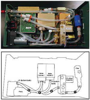 修改過(guò)程包括去除已有的連接空氣過(guò)濾器、CO2注入系統、第1個(gè)緩沖腔室和泵的Bev-a-line(R)管路;氣路的其余部分保持不變。整個(gè)修改過(guò)程只需少量工具,操作簡(jiǎn)便,只需要2個(gè)小時(shí)或更短的時(shí)間。