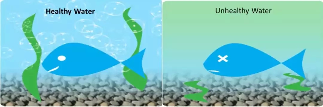 圖1 健康水體中的有機物含量少,溶解氧多,可供魚(yú)類(lèi)等水生生物呼吸之用(源/Quikr Exam)
