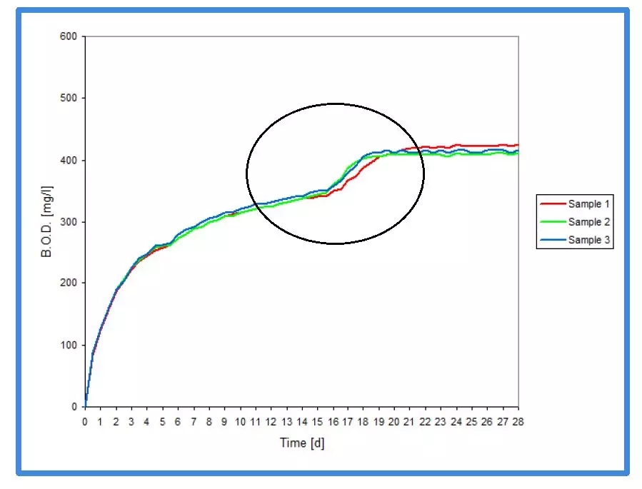 這種測量方法有不足之處。例如,只有“點(diǎn)”上的數據,無(wú)法獲得變化“過(guò)程”中的BOD數據;另外,如果想繼續測量水樣BOD在其他時(shí)間點(diǎn)的數據,如BOD20,樣品測量瓶需取出恒溫培養箱,測試樣品就會(huì )被干擾,導致后續的測量數據準確度下降。而且,樣品BOD的平臺期是在什么時(shí)間達到的也不清楚。
