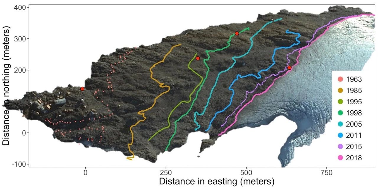 圖3 冰川消退進(jìn)程記錄(1963~2018)