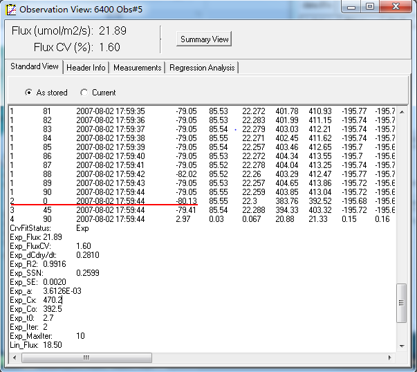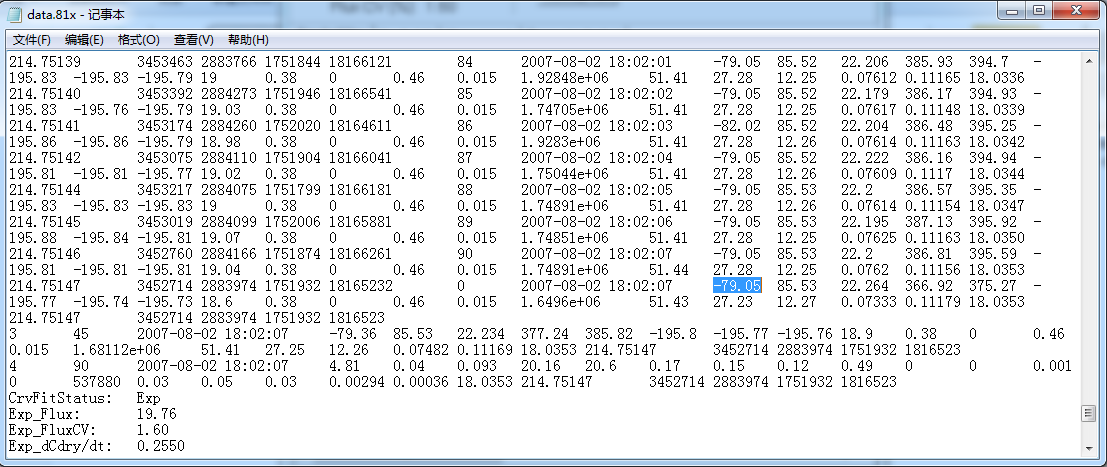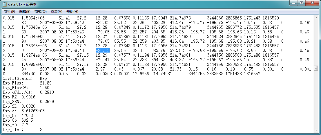3、 要對 Tcham 讀數異常的數據進(jìn)行校正,需修改每次測定數據的 type2 的 Tcham,例如紅色標記的-80.13, 將其修改為正確的溫度值; |