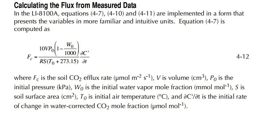 1、 土壤碳通量計算公式(參見(jiàn)Manual),若 Tcham溫度讀數(T0)不正常,則會(huì )影響最終Flux通量值。 |