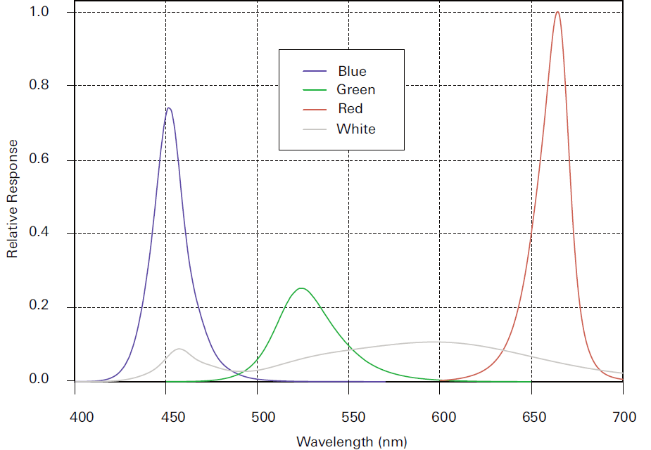 6cm×6cm紅綠藍白大光源LED的典型光譜輸出