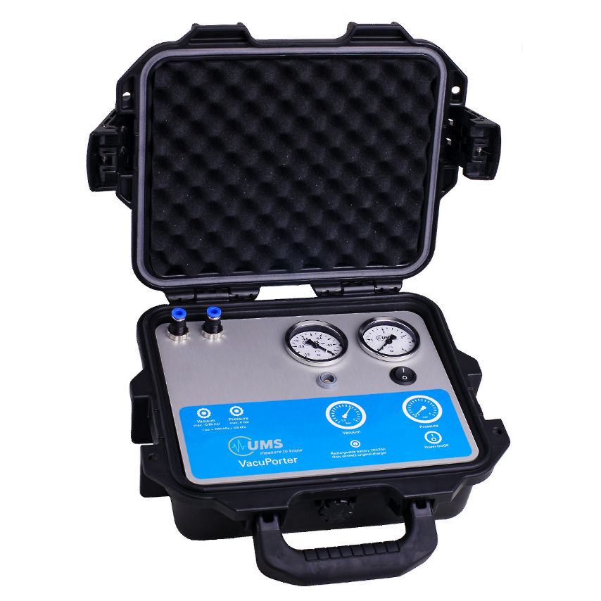 將采樣瓶抽空至大約50 kPa。當土壤水分張力低于50kPa時(shí),土壤水溶液將被提取,直至采樣瓶和土壤水分張力均衡。這款便攜式真空泵具可充電電池,可以輕松收集孔隙水樣。